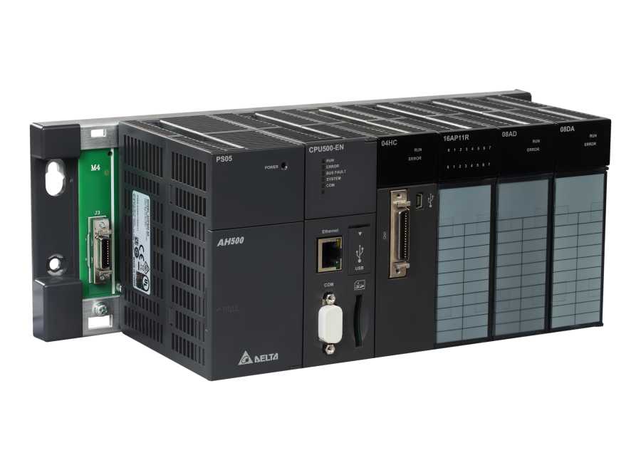 The Delta AH Series is a hot-swappable mid-range PLC designed for complex and high-reliability automation systems. It features a modular architecture that supports hot-swapping of I/O modules, allowing maintenance or upgrades without stopping system operations. Ideal for large-scale and continuous-process industries, the AH Series offers high-speed processing, extensive I/O capacity, and multiple communication interfaces such as Ethernet, CANopen, and Modbus. It also supports redundant CPUs, motion control, and complies with international programming standards (IEC 61131-3), making it suitable for applications in water treatment, power generation, building automation, and advanced manufacturing.